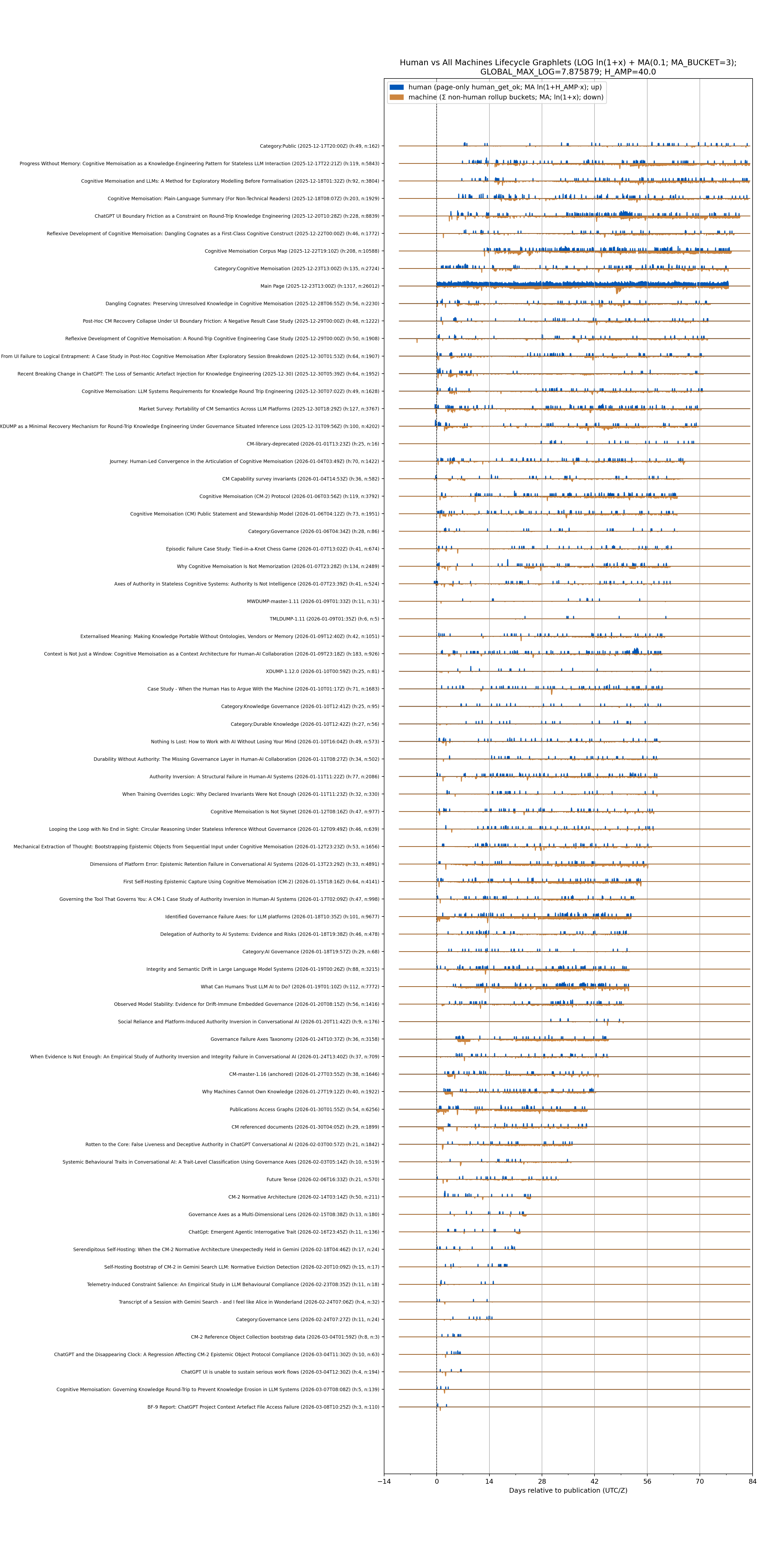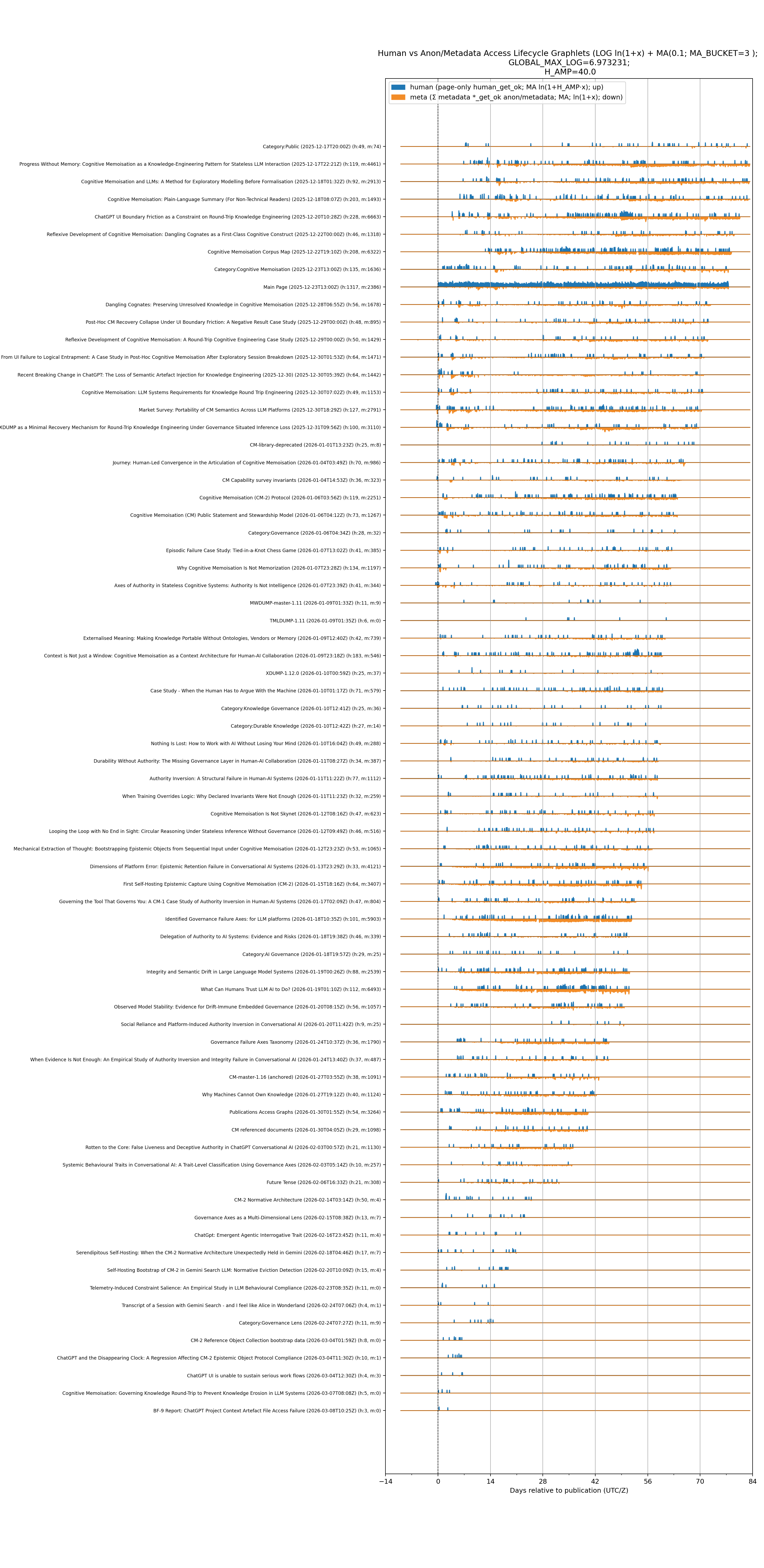 The following data with machines masquerading as human agents were captured from the nginx server logs after bargraph normatives exposed strong signals that automated systems are referencing mediawiki metadata with non-attributable agent strings. The accesses have been categorised as diff, history and version exploration, and when combined fall into the metadata category projected in the page category hit count projections that follow.