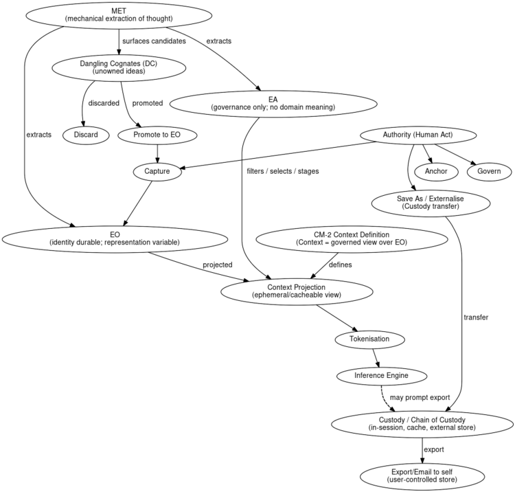 This capture is only a beginning. CM-2 does not prescribe what should be believed, only how belief, context, and custody must be handled. Future work may extend these mechanisms into richer tooling, automated MET pipelines, and multi-party collaboration. What this session establishes is that the foundations are already sufficient: with explicit governance and externalised cognition, human–AI collaboration can produce knowledge that is not merely generated, but owned, preserved, and trusted.